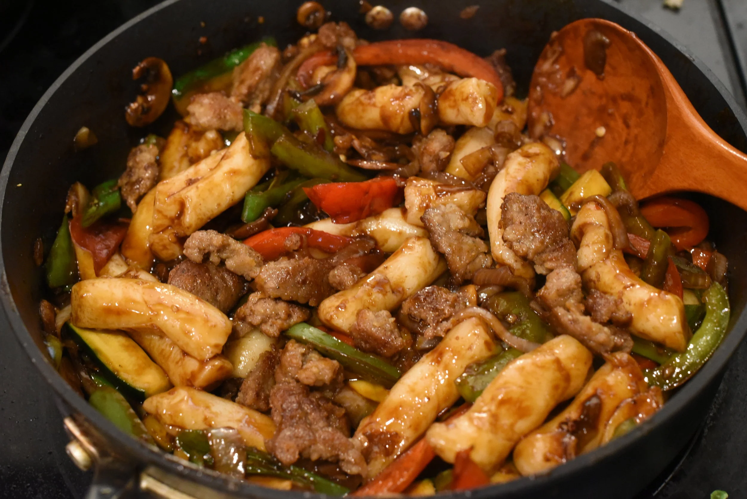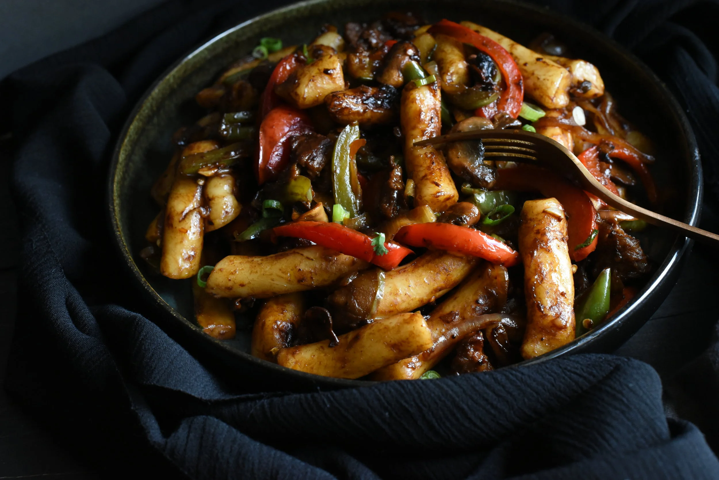 Korean Royal Style Dukbokki with Szechuan Twist (vegan)
